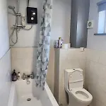 Bathroom facilities at Spacious, 3 Double Bedroomed, Free Parking, 9 Mins Elland Rd, Nr Leeds City Centre villa also include a separate toilet, a shower, and a washing machine.